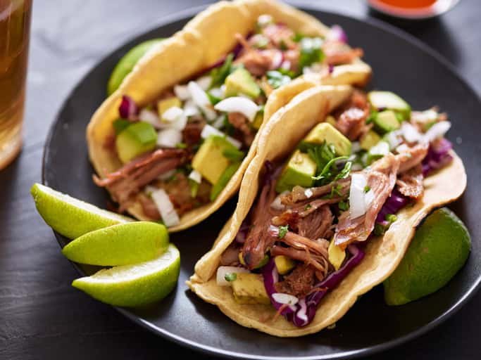 Pulled pork tacos are a delightful fusion of flavours and textures. Fill tortillas with tender pulled pork, coleslaw, diced tomatoes, and tangy BBQ sauce for a delicious meal. This combination creates a quick, delicious, and satisfying meal perfect for any occasion.